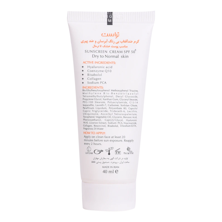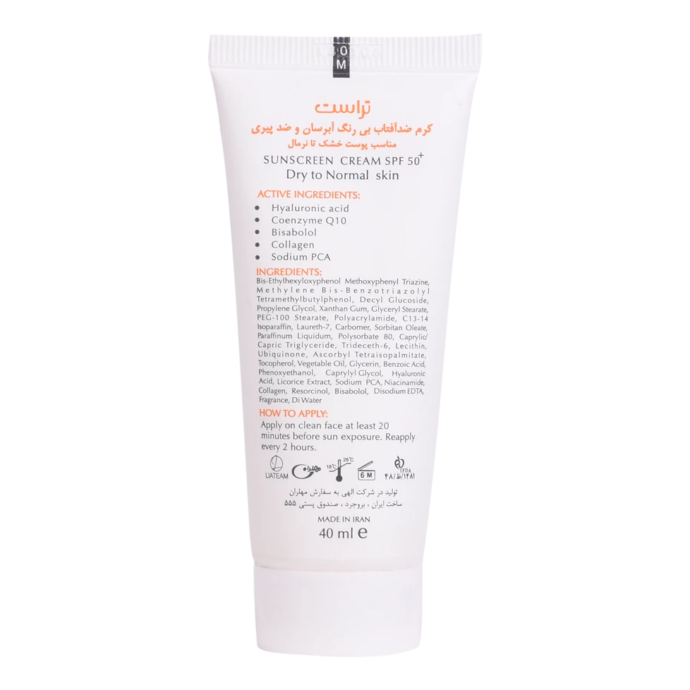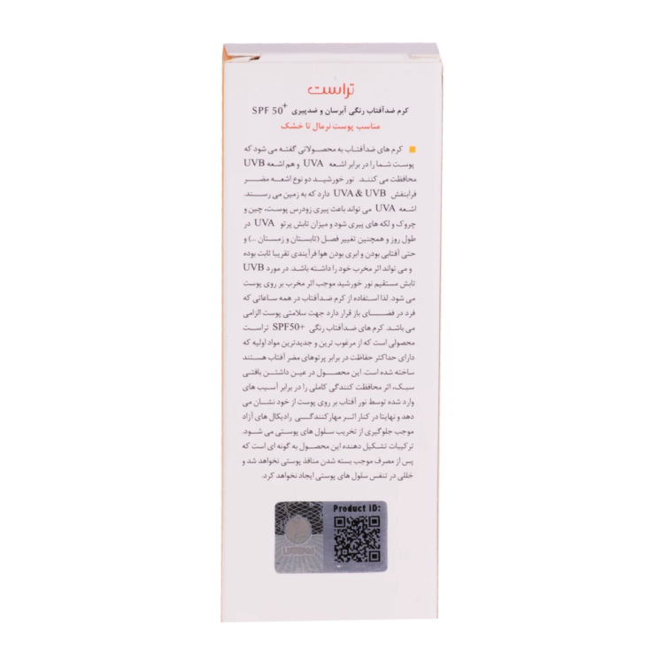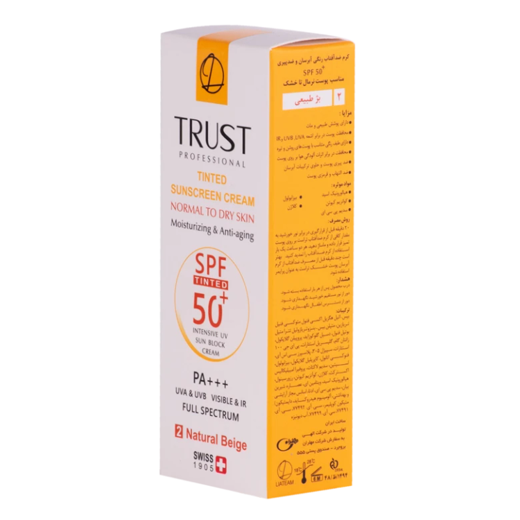 اگر فکر میکنید سادهترین و مطمئنترین راهکار پیش روی شما برای در امان ماندن از اشعههای مضر خورشید، قهر کردن با آفتاب است، سخت در اشتباهید! با دوری از این منبع شگفتانگیز به هیچوجه نمیتوان به خوبی زندگی کرد، چون حال خوشتان را مدیونش هستید. اما برای مراقبت و محافظت از سطح پوست و جلوگیری از پیری آن، باید «کرم ضدآفتاب رنگی» بزنید. کرمهای ضدآفتاب رنگی تراست با SPF50+ از مرغوبترین و جدیدترین مواد اولیه موثره دارای حداکثر حفاظت دربرابر پرتوهای مضر خورشید ساخته شدهاند؛ این کرم با وجود بهرهمندی از بافتی سبک، دربرابر آسیبهای وارده توسط نور خورشید به خوبی از پوست محافظت و با مهار رادیکالهای آزاد از تخریب سلولهای پوستی جلوگیری میکند. همچنین با مصرف این محصول، بدون بسته شدن منافذ پوستی و ایجاد خلل در تنفس سلولهای پوستی، پوستتان آبرسانی میشود. روش مصرف: 20 دقیقه پیش از قرارگیری دربرابر نور خورشید به مقدار کافی از این کرم را روی پوست تمیز خود قرار داده و ماساژ دهید. در ضمن به شما توصیه میکنیم تا هر دو ساعت یک بار کرم ضدآفتاب خود را تمدید کنید.