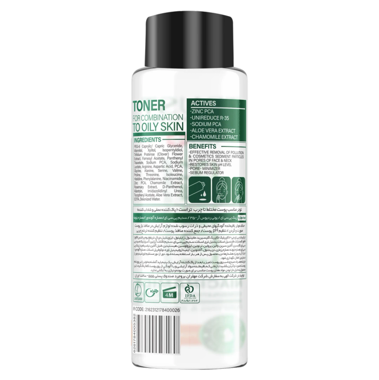 گاهی اوقات پوست ما به چیزی بیش از یک شوینده یا پاککننده احتیاج دارد. محصولی که باعث تقویت پوست و ایجاد طراوت و شادابی در آن میشود. تونر محصولی است که بعد از شستشو و پاکسازی پوست مورد استفاده قرار میگیرد. این محصول باقیمانده آلودگیهای محیطی و ذرات رسوبشده لوازم آرایش در منافذ باز پوست صورت و گردن را از بین میبرد. تونر سطح پوست را تقویت و آن را آبرسانی کرده و مرطوب نگه میدارد. همچنین این محصول تنظیمکننده pH پوست شماست و با دارا بودن خواص آنتیاکسیدانی از پوست شما در برابر آسیب رادیکالهای آزاد محافظت میکند. علاوه بر این، تونر مواد مغذی مورد نیاز پوست شما را تأمین میکند. تونر مناسب پوست چرب و مختلط تراست، با داشتن زینک پی سی ای و یونی ردیوس آر-35 در ساختار خود، از ایجاد جوش و آکنه جلوگیری کرده و تولید سبوم در پوست را کنترل میکند. سدیم پی سی ای در این محصول، پوست را آبرسانی کرده و به جذب آب در لایههای سطحی پوست کمک میکند. این تونر به علت وجود عصاره آلوئهورا، از التهابات پوست جلوگیری کرده و چربی پوست را کنترل میکند. علاوه بر این، وجود عصاره بابونه در این محصول باعث ایجاد خواص آنتیاکسیدانی شده و از پوست در برابر آسیب رادیکالهای آزاد مراقبت میکند. روش مصرف: صبح و شب روی پوست تمیز یا بعد از پاککننده آرایش، یک پنبه یا پد آغشته به تونر را بر روی تمام پوست صورت و گردن بکشید تا زمانیکه باقیمانده مواد آرایشی و یا آلودگی از روی پوست کاملاً پاک گردد. این محصول به دلیل دارا بودن مواد مغذی پوست مناسب برای صورت بوده و نیازی به آبکشی ندارد.