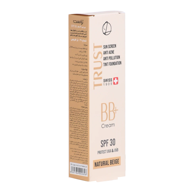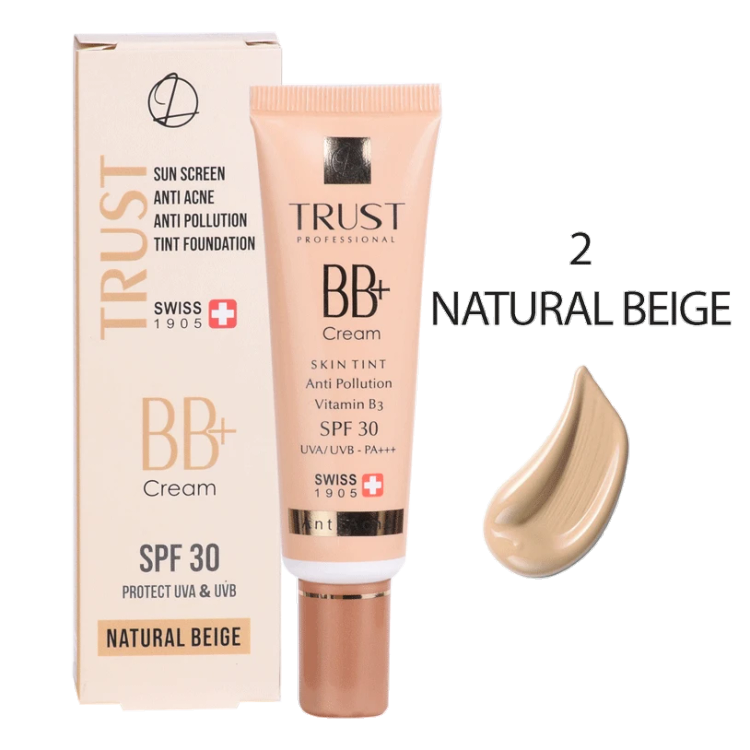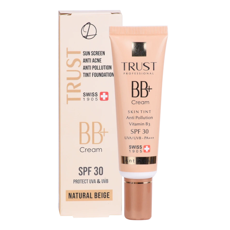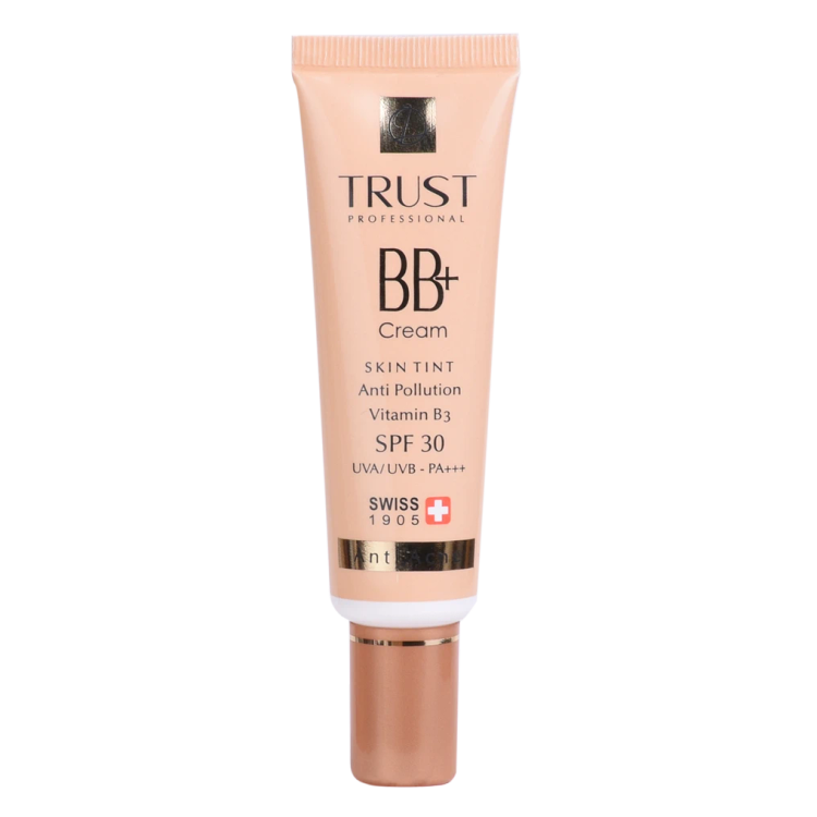 بی بی کرم (Beauty Balm یا Blemish Balm) یا کرم پودر BB تراست، محصولی آرایشی (با پوششدهی طبیعی برای پوشاندن لکهای خفیف و نواقص جزئی پوست) است با خواص بینظیری برای مراقبت از پوست، همچون آبرسانی، ضدپیری و محافظت از پوست دربرابر اشعههای خورشید. به خاطر ترکیباتی که در ساخت این محصول بکارگرفتهشده، میتوان از آن به عنوان کرم پودر، کرم روشنکننده، آبرسان، ماتکننده و محافظ پوست دربرابر اشعههای خورشید استفاده کرد. بی بی کرم پلاس (BB+) تراست، ضمن پوششدهی طبیعی و مناسب روی پوست، آن را آبرسانی کرده، از ظهور چینوچروک بر آن جلوگیری کرده و از پوست در مقابل اشعههای UVA و UVB خورشید محافظت میکند. همچنین این کرم ترشح غدد چربی پوست را کنترل کرده و از بروز جوش و آکنه جلوگیری میکند. بی بی کرم پلاس (BB+) تراست، با کاهش ملانین و رنگدانههای پوست، از ایجاد لک روی پوست پیشگیری کرده و آن را روشنتر میکنند. ترکیبات فعال زینک پی سی ای و درماپیور اچ پی بکارگرفتهشده در فرمولاسیون این محصول، به طور همافزا با کنترل چربی پوست، از بروز جوش و آکنه جلوگیری میکند. همچنین ترکیباتی همچون زایلیتول، آکواکسیل و هیالورونیک اسید، در بی بی کرم در کنار هم، با خواص آبرسانی که دارند، ضمن جلوگیری از تبخیر آب از سطح پوست، به حفظ رطوبت آن کمک میکنند. ترکیب دیگری که در بی بی کرم پلاس تراست استفاده شده، نیاسینامید است. نیاسینامید یک ترکیب ضدالتهاب است که ضمن خاصیت روشنکنندگی به بسته شدن منافذ و جلوگیری از ایجاد آکنه هم کمک میکند. وجود عصاره مخمر و میتوکینیل نیز موجب جذب آلودگیهای مختلف همچون آلایندهها شده و با تقویت سد دفاعی پوست، از ظهور چینوچروک روی پوست جلوگیری میکنند. در ضمن، میتوکینیل، باعث کاهش میزان رنگدانه ملانین در پوست شده و به داشتن پوستی روشن و بدون لک کمک میکند. بی بی کرم پلاس (BB+) تراست، در 3 رنگ بژ روشن، بژ طبیعی و بژ تیره تولید و عرضه میشوند. توجه ویژه: این محصول، به لحاظ رنگ، مشابه با کرمپودر BB تراست شماره 3 میباشد. نحوه مصرف: بی بی کرم پلاس تراست بر روی پوست تمیز قرار داده و به وسیله انگشت یا پد بر روی پوست پخش نمایید. پیشنهاد میشود پیش از استفاده از این محصول، از کرم آبرسان مطابق با نوع پوست خود و یا پرایمر تراست استفاده نمایید. توصیه میشود هر 2 الی 3 ساعت جهت محافظت از پوست در برابر آفتاب، محصول را روی پوستتان تجدید نمایید. جهت پاکسازی پوست، توسط محصولات تراست مراحل زیر را به ترتیب انجام دهید: مرحله 1: ابتدا با میسلار واتر و یا پاککننده دوفازی، پوست خود را پاک نمایید. مرحله 2: پوست خود را توسط ژل شستشو یا پن (مطابق نوع پوست خود)، شستشو نمایید. مرحله 3: از تونر مغذی تراست منطبق با پوست خود (چرب و مختلط یا خشک و نرمال) استفاده نمایید.