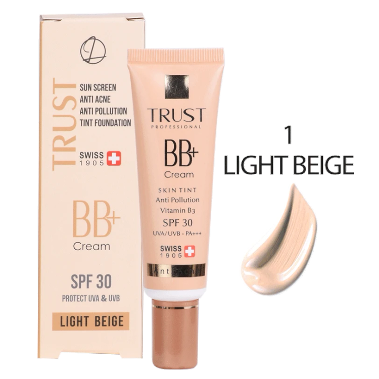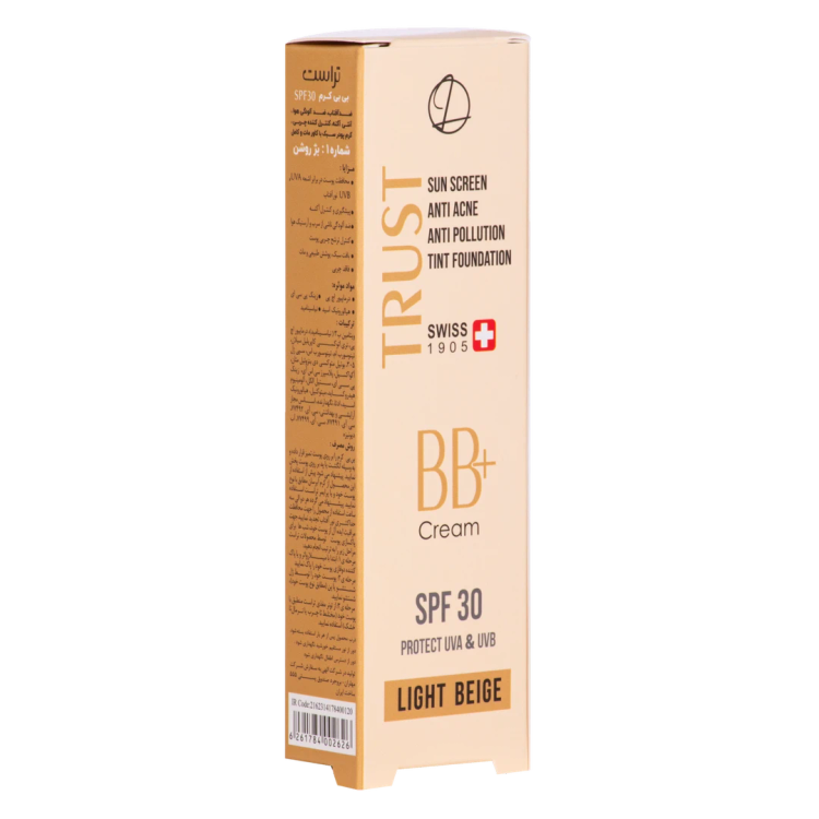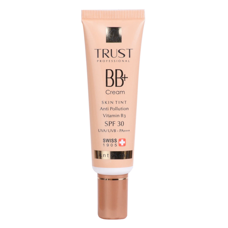 بی بی کرم (Beauty Balm یا Blemish Balm) یا کرم پودر BB تراست، محصولی آرایشی (با پوششدهی طبیعی برای پوشاندن لکهای خفیف و نواقص جزئی پوست) است با خواص بینظیری برای مراقبت از پوست، همچون آبرسانی، ضدپیری و محافظت از پوست دربرابر اشعههای خورشید. به خاطر ترکیباتی که در ساخت این محصول بکارگرفتهشده، میتوان از آن به عنوان کرم پودر، کرم روشنکننده، آبرسان، ماتکننده و محافظ پوست دربرابر اشعههای خورشید استفاده کرد. بی بی کرم پلاس (BB+) تراست، ضمن پوششدهی طبیعی و مناسب روی پوست، آن را آبرسانی کرده، از ظهور چینوچروک بر آن جلوگیری کرده و از پوست در مقابل اشعههای UVA و UVB خورشید محافظت میکند. همچنین این کرم ترشح غدد چربی پوست را کنترل کرده و از بروز جوش و آکنه جلوگیری میکند. بی بی کرم پلاس (BB+) تراست، با کاهش ملانین و رنگدانههای پوست، از ایجاد لک روی پوست پیشگیری کرده و آن را روشنتر میکنند. ترکیبات فعال زینک پی سی ای و درماپیور اچ پی بکارگرفتهشده در فرمولاسیون این محصول، به طور همافزا با کنترل چربی پوست، از بروز جوش و آکنه جلوگیری میکند. همچنین ترکیباتی همچون زایلیتول، آکواکسیل و هیالورونیک اسید، در بی بی کرم در کنار هم، با خواص آبرسانی که دارند، ضمن جلوگیری از تبخیر آب از سطح پوست، به حفظ رطوبت آن کمک میکنند. ترکیب دیگری که در بی بی کرم پلاس تراست استفاده شده، نیاسینامید است. نیاسینامید یک ترکیب ضدالتهاب است که ضمن خاصیت روشنکنندگی به بسته شدن منافذ و جلوگیری از ایجاد آکنه هم کمک میکند. وجود عصاره مخمر و میتوکینیل نیز موجب جذب آلودگیهای مختلف همچون آلایندهها شده و با تقویت سد دفاعی پوست، از ظهور چینوچروک روی پوست جلوگیری میکنند. در ضمن، میتوکینیل، باعث کاهش میزان رنگدانه ملانین در پوست شده و به داشتن پوستی روشن و بدون لک کمک میکند. بی بی کرم پلاس (BB+) تراست، در 3 رنگ بژ روشن، بژ طبیعی و بژ تیره تولید و عرضه میشوند. توجه ویژه: این محصول، به لحاظ رنگ، مشابه با کرمپودر BB تراست شماره 2 میباشد. نحوه مصرف: بی بی کرم پلاس تراست بر روی پوست تمیز قرار داده و به وسیله انگشت یا پد بر روی پوست پخش نمایید. پیشنهاد میشود پیش از استفاده از این محصول، از کرم آبرسان مطابق با نوع پوست خود و یا پرایمر تراست استفاده نمایید. توصیه میشود هر 2 الی 3 ساعت جهت محافظت از پوست در برابر آفتاب، محصول را روی پوستتان تجدید نمایید. جهت پاکسازی پوست، توسط محصولات تراست مراحل زیر را به ترتیب انجام دهید: مرحله 1: ابتدا با میسلار واتر و یا پاککننده دوفازی، پوست خود را پاک نمایید. مرحله 2: پوست خود را توسط ژل شستشو یا پن (مطابق نوع پوست خود)، شستشو نمایید. مرحله 3: از تونر مغذی تراست منطبق با پوست خود (چرب و مختلط یا خشک و نرمال) استفاده نمایید.