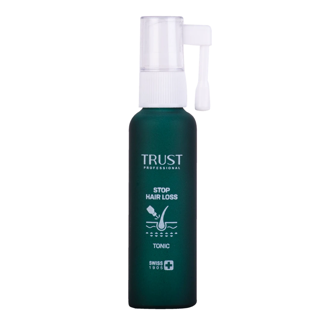 برای تاثیر گذاری بهتر از شامپو تخصصی ضدریزش استفاده شود. طراحی مکانیزم ضد ریزش در این تونیک به گونهای است که در مرحله اول روی سیکل رویش مو اثر میگذارد؛ با افزایش زمان رشد تار مو (آناژن) و کم کردن زمان مرحله ریزش مو (تلوژن)، تار مو زمان بیشتری را در مرحله رشد قرار میگیرد. در مرحله بعد این محصول موجب مهار آنزیم 5- آلفا ردوکتاز و جلوگیری از تشکیل DHT، مهار التهابهای پوستی و ریز التهابهای فولیکول مو و کنترل غدد چربی پوست سر میشود. (ترشح زیاد غدد چربی باعث تجزیه اسیدهای چرب روی پوست سر شده و محیط مناسبی برای رشد قارچها و باکتریها پدید میآورد. فعالیت باکتریها باعث ایجاد رادیکالهای آزاد شده که موجب تشدید ریزش موی سر را میشوند) این محصول قابل استفاده بر هر دو الگوی ریزش موی زنانه و مردانه بوده و همچنین مکانیزم اثر بخشی محصول به گونهای است که پس از قطع مصرف عوارض محصولات حاوی ماینوکسیدیل را ندارد. همچنین اکتیوهای تخصصی تونیک تراست باعث بهبود گردش خون در پوست سر شده و شرایط مناسبی برای تغذیه کافی ریشه مو فراهم کرده و موجب تحریک گردش خون مویرگی و تحریک رشد موی سر میشود. ویتامینهای مورد مصرف در تونیک تراست نیز اثرات منحصربهفردی در فولیکول و تار مو دارد؛ بیوتین یا ویتامین H موهای شکننده و سالم و به طور کلی بافت مو را بهبود میبخشد. بیوتین برای ضخامت و حجم مو بسیار مفید بوده و در تولید اسیدهای چرب و بسیاری دیگر از فرآیندها مهم است. بیوتین همچنین موجب افزایش سرعت رشد مو میشود. ویتامین E برای رشد مو ضروری است و مشکلات رایج موهای خشک و خشن را برطرف میکند، موها را مرطوب و براق میسازد و همچنین پوست سر را سالم نگه میدارد و گردش خون را بهتر میکند. ویتامینهای گروه B بر فعالیتهای متابولیک تاثیر گذاشته و موجب تقویت پیاز مو میشوند. جهت اثر بخشی بهتر این محصول حتما از شامپوهای تراست منطبق با نوع موی خود استفاده کنید