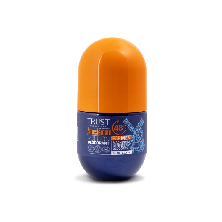 همه افراد برای خوشبو نگه داشتن بدن خود نیاز به یک ماده خوشبوکننده مناسب و باکیفیت دارند. مامرولها از یک مایع ملایم برای ناحیه زیربغل، یک توپ غلتان و نیز یک محفظه نگهدارنده مایع تشکیل شدهاند. مامرولهای تراست، دارای فواید زیر است: جلوگیری از ایجاد بوی بد بدن؛ قابلیت حمل آسان؛ عدم ایجاد رد سفید یا زردی روی بدن و لباس؛ فاقد الکل آزاد؛ ضد آلرژی و حساسیت؛ ایجاد احساس خشکی و تازگی زیربغل تا 48 ساعت (به علت وجود منیزیم)؛ بهواسطه داشتن خاصیت آنتیباکتریال و تنظیمکنندگی pH پوست، مانع رشد باکتری و ایجاد بوی بد روی سطح پوست میشود. علاوهبراین، به علت دارا بودن ماده «منیزیم هیدروکساید»، خصوصیاتی از جمله موارد زیر را به همراه دارد: کاهش تعریق بدن؛ از بین بردن بوی بد بدن؛ کاهش احتمال حساسیت پوستی؛ جایگزین مؤثر آلومینیوم و دیگر مواد مضر موجود در ضدتعریقها؛ ایجاد یک عایق روی پوست و ممانعت از ایجاد بوی بد زیربغل؛ ممانعت از ایجاد احساس چربی روی پوست؛ عدم ایجاد لک روی پوست یا لباس. لوسیون خوشبوکننده (مام رول) مردانه تراست مدل آمستردام، دارای رایحهای مشابه عطر Bvlgari Man Wood Essence و گروه بویایی خنک و آرامشبخش است. این محصول، با نت اولیه ترنج، گل لوتوس، نارنگی ماندارین و سرخالو به شما حس تازگی میدهد. سپس با نت چوب اقاقیای برزیلی، آب دریا و پرتقال روبهرو میشوید. پس از کمی ماندن روی بدن نیز با نت پایانی دانه تونکا، لوبان، مشک و کهربا جذابیت خود را تکمیل میکنید