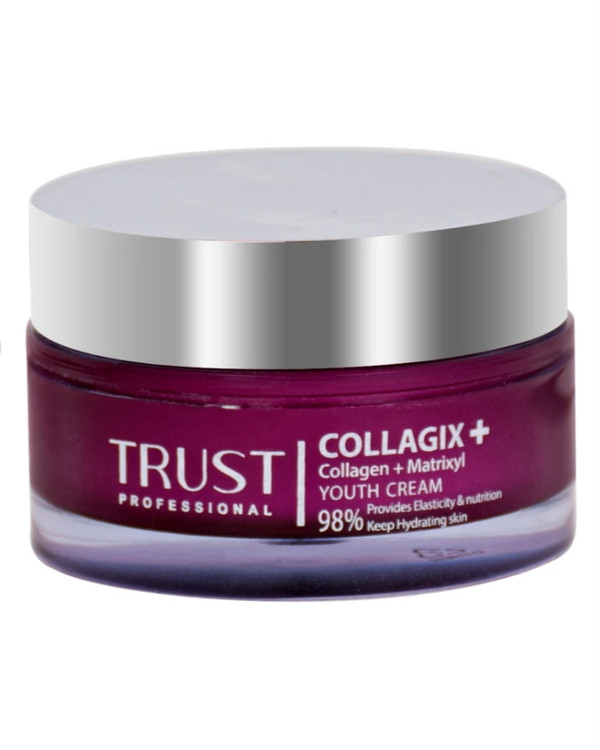 از آنجاییکه با افزایش سن و گذشت زمان، به صورت طبیعی، میزان تولید پروتئینهای استحکامبخش پوست کاهش یافته و پوست دچار چینوچروک میگردد، پوست به مراقبت و آبرسانی بیشتری نیاز دارد؛ بنابراین استفاده از محصولات تخصصی ضدچروک برای همه افراد ضرورت دارد. وجود کلاژن در ترکیب فرمولاسیون کرم جوانساز کلاژن تراست، علاوه بر حفظ ساختار سلولهای پوستی، از ایجاد چینوچروکهای پوستی جلوگیری کرده و به طرز مؤثری به بهبود خشکی پوست کمک میکند. کمپلکس سرامید موجود در این محصول، باعث تقویت و استحکام ساختار سلولهای پوستی شده و از تخریب سلولهای پوستی تحت تأثیر آسیبهای محیطی مانند تابشهای مضر خورشید، آلودگی هوا و گرمای شدید، جلوگیری میکند. همچنین با داشتن ترکیب فعال ماتریکسیل مورفومیکس، به طرز مؤثری چینوچروکهای صورت، به ویژه خطوط عمودی آن و چروکهای پنجه کلاغی را از بین برده و به تقویت ساختار پوست صورت کمک میکند. در کنار این سه ویژگی اصلی، این کرم جوانساز پوست، با داشتن هیالورونیک اسید، ضمن آبرسانی پوست، خاصیت سفتکنندگی و استحکامبخشی داشته و جلوی ایجاد چینوچروکهای پوستی را گرفته و به حفظ یکپارچگی آن نیز کمک میکند. همچنین، امگا 3 و امگا 6 موجود در این محصول، با تقویت سد دفاعی پوست، رطوبت پوست را حفظ کرده و از این طریق، مانع از خشکی و پیری پوست میشود. و در نهایت، پلی پپتاید آرژینین و لایزین موجود در کرم جوانساز کلاژن تراست، از ایجاد چینوچروک در پوست جلوگیری کرده و به حفظ شادابی و سلامت پوست کمک میکند. در کنار مواد مؤثره مطرحشده، این محصول تراست، با عصاره دانه لوپینوس آلبوس، به حفظ استحکام و افزایش خاصیت کشسانی پوست، با آسپارلین، به بهبود سوختوساز سلولهای پوستی و تکثیر آنها، با روغن آووکادو، به حفظ استحکام و پایداری پوست و با هلیانتوس آنوس سید اویل، به بهبود آبرسانی و جلوگیری از پیری پوست، کمک میکند. روش مصرف: مقدار مناسبی از کرم را بر روی پوست تمیز و شستهشده قرار داده و بهآرامی ماساژ دهید (2 بار در روز قابل استفاده میباشد). هشدار: درب محصول پس از هر بار استفاده بسته گردد. دور از نور مستقیم خورشید نگهداری شود. دور از دسترس اطفال نگهداری شود.